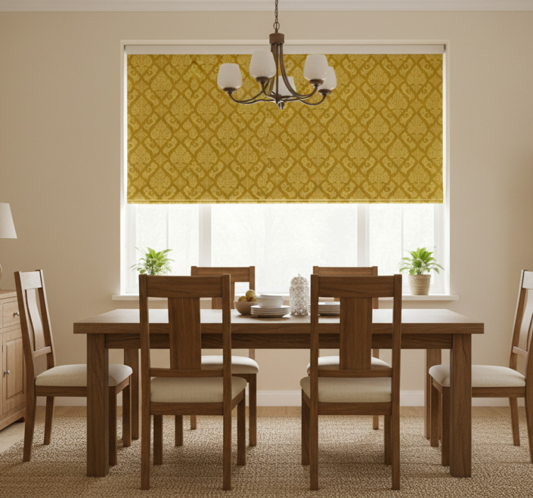 Referentienummer: E8225Rolgordijn geel met ingewikkeld bloemmotief