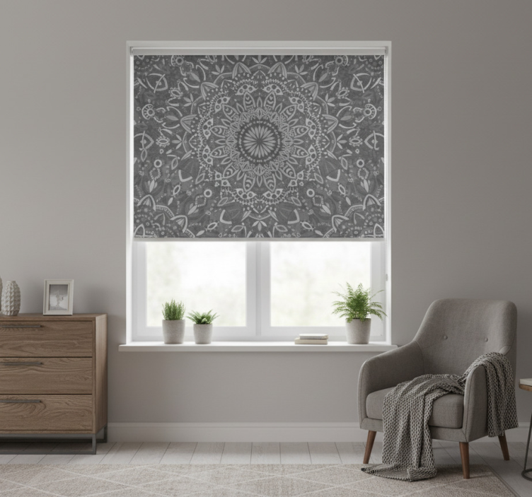 Referentienummer: E8803Rolgordijn grijs met ingewikkeld mandala patroon