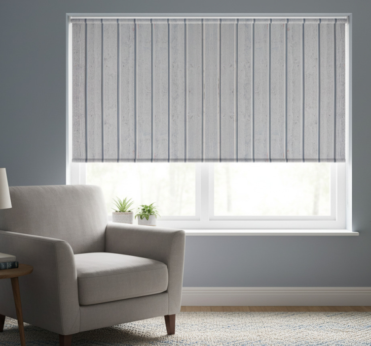 Rolgordijn grijs met witte houten latten