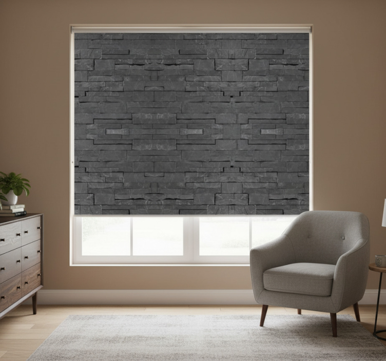 Referentienummer: E8810Rolgordijn grijs met zwarte stenen