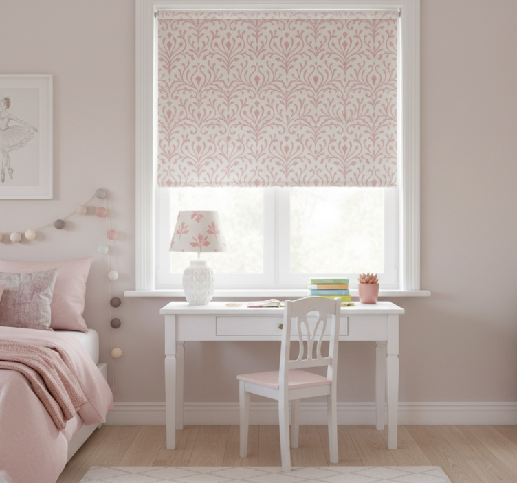 Het ontwerp bevat ingewikkelde bloemmotieven met een scala aan kronkelige wijnstokken en delicate knoppen in warme roze tinten. Elk element verweeft zich harmonieus, waardoor een visueel aantrekkelijk patroon ontstaat. Het algehele effect roept een gevoel van gratie en charme op, perfect om een vleugje verfijning aan elke ruimte toe te voegen. Rolgordijn roze elegant en minimalistisch patroon is een prachtig voorbeeld van hedendaags design. Met zijn zachte roze tint en stijlvolle, minimalistische patronen, voegt dit rolgordijn een vleugje elegantie en verfijning toe aan elke ruimte. Het ontwerp is niet alleen visueel aantrekkelijk, maar ook functioneel, waardoor het een ideale keuze is voor zowel moderne als klassieke interieurs. Dit rolgordijn is perfect om een warme en uitnodigende sfeer te creëren, terwijl het tegelijkertijd praktisch blijft. Het biedt bescherming tegen direct zonlicht en maakt het mogelijk om de kamertemperatuur te reguleren, waardoor het een essentieel onderdeel is van uw woninginrichting.