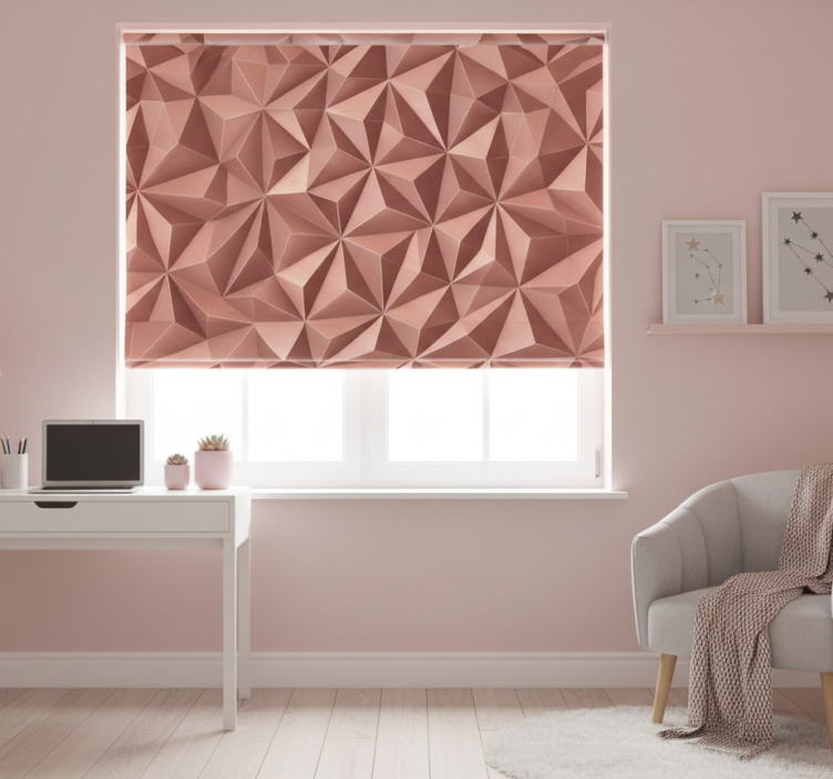 Rolgordijn roze met abstract geometrisch folie in roségoud