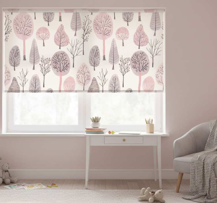 Rolgordijn roze met nordic bomen