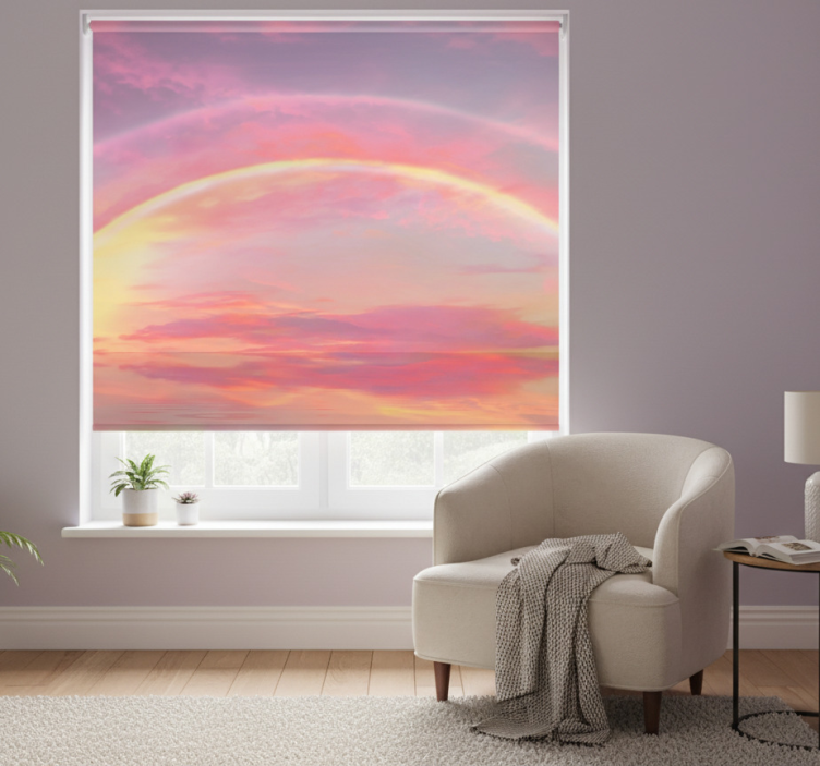Rolgordijn roze roze lucht met regenboog