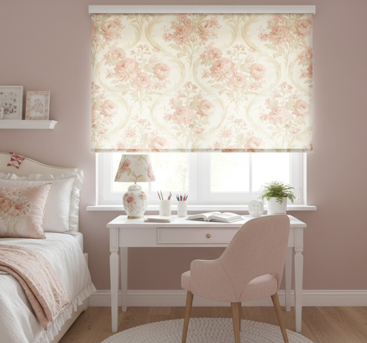 Referentienummer: E8196Rolgordijn roze vintage lichtgewassen bloemen ontwerp