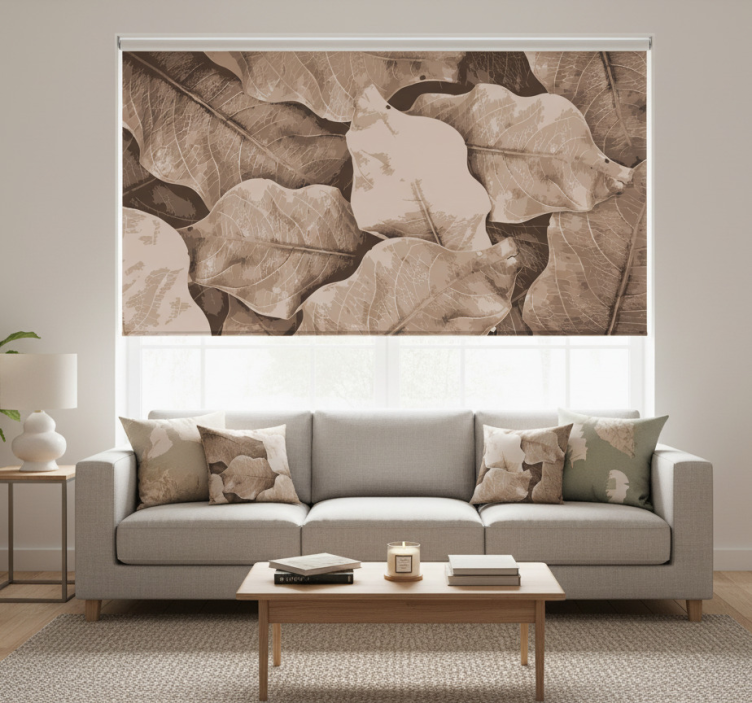 Rolgordijn woonkamer beige drie bladeren
