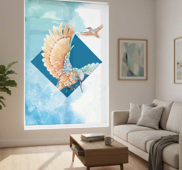 Referentienummer: E8645Rolgordijn woonkamer ijsvogel motief