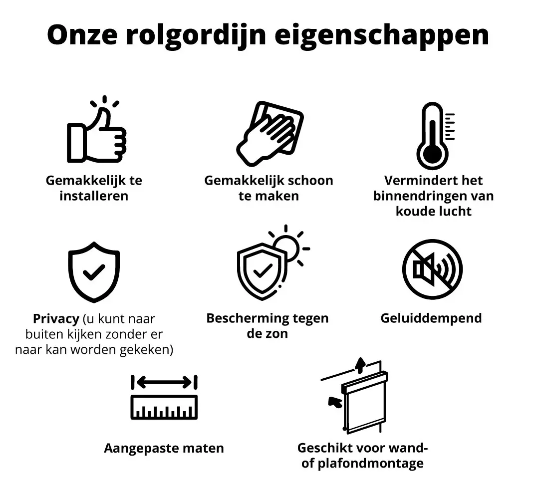 Aangepaste rolgordijnen zijn een modern en goedkoop alternatief om elk raam aan te kleden. De installatie en montage van de Tenstickers jaloezieën is heel eenvoudig, u kunt het zelf doen zonder al te veel moeite en tijd te investeren. Houd er rekening mee dat onze jaloezieën volledig gemonteerd worden geleverd en alleen de montage van de beugels vereist.