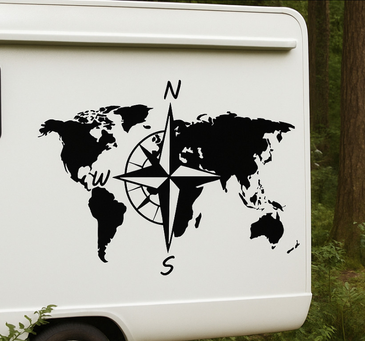 Referentienummer: A53896De Caravan sticker worldpam met kompas is een echte eyecatcher voor iedere kampeerauto! Met zijn prachtige grafische ontwerp, dat een wereldkaart met een stijlvol kompas combineert, brengt deze sticker avontuur en ontdekking naar jouw voertuig. De satijnen afwerking zorgt ervoor dat er geen reflecties zijn door binnen- of buitenlicht, terwijl de kleurintensiteit je een levendig en aantrekkelijk uiterlijk biedt. Dit hoogwaardige vinylproduct is eenvoudig te onderhouden; een vochtige doek en wat neutrale zeep zijn voldoende om het schoon te maken.