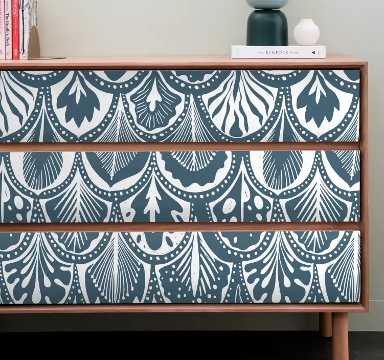 Breng een vleugje natuur in uw interieur met onze Decoratie sticker bloemenprint stijl. Dit prachtige ontwerp is geïnspireerd op de schoonheid van bloemen en heeft een grafisch patroon dat doet denken aan vissenschubben in een betoverende blauwe tint. De combinatie van bloemen en een sierlijke textuur maakt dit product perfect voor het verfraaien van uw meubilair en het creëren van een warme, uitnodigende sfeer.