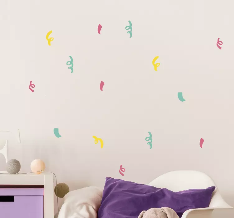 Breng een speelse en moderne sfeer in uw interieur met onze decoratie sticker kleurrijke gebogen vormen. Dit unieke ontwerp vol confetti en verdraaide, kleurrijke vormen zorgt voor een levendige uitstraling die elke ruimte opvrolijkt. De bochten in het ontwerp geven een dynamische uitstraling waardoor het een perfecte aanvulling is voor zowel kinderkamers als trendy woonruimtes. Laat uw creativiteit de vrije loop en geef uw muren een frisse look!