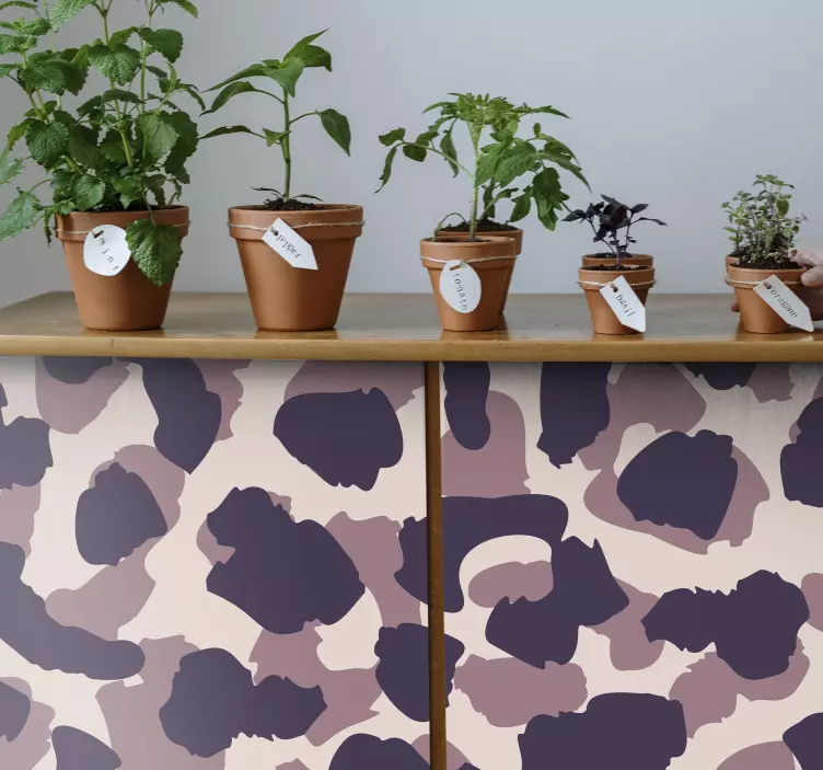 Breng de natuurlijke schoonheid van de jungle in uw huis met onze Decoratie sticker luipaardpatroon print. Dit stijlvolle ontwerp is een perfecte combinatie van camouflage en een modern abstract patroon dat geïnspireerd is door de natuur. Met zijn purperen tinten en dierenprint, voegt deze sticker een unieke flair toe aan elk meubilair. Laat uw ruimte stralen met deze trendy en eigentijdse decoratie!