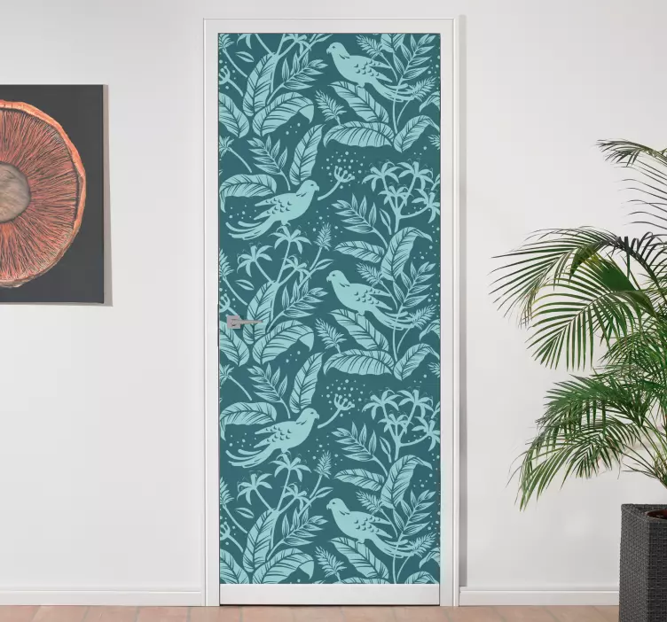 Breng een vleugje tropische flair in je huis met onze deursticker tropisch vogel idee. Dit prachtige grafische ontwerp bevat kleurrijke veren bladeren en bloemen die samen een levendig patroon creëren. De vrolijke vogels en de weelderige natuur zorgen voor een frisse uitstraling die elke deur transformeert in een blikvanger. Maak je interieur uniek met deze schitterende sticker!