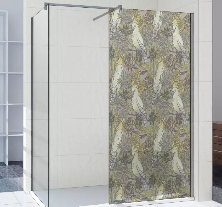 Breng de natuur in uw badkamer met onze Douchedeur sticker elegante vogelmotieven. Dit prachtige ontwerp toont een harmonieus samenspel van papegaaien en bloemen die samen met bladeren een serene ambiance creëren. De elegante vogels fladderen tussen de kleurrijke flora, wat zorgt voor een decoratieve uitstraling die de sfeer van de natuur naar binnen haalt. De combinatie van deze elementen maakt deze sticker niet alleen visueel aantrekkelijk, maar ook een perfecte aanvulling op elk douche scherm.