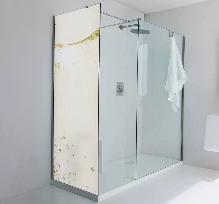 Ontdek de Douchedeur sticker elegante waterspatten, een prachtig grafisch ontwerp dat de schoonheid van vloeistof en bubbels vastlegt. Dit unieke ontwerp brengt een moderne aquatische sfeer in uw badkamer met een schitterende fotografie van plonsend water. De transparante afwerking maakt het mogelijk om deze sticker perfect te integreren in uw badkamerinterieur, waardoor elke douchebeurt een verfrissende ervaring wordt!