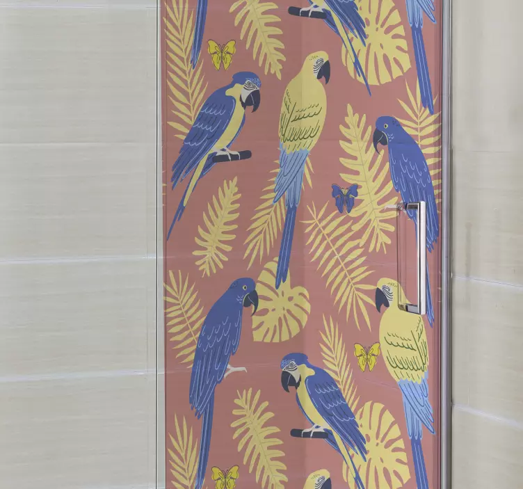 Douchedeur sticker kleurrijk papegaaienpatroon