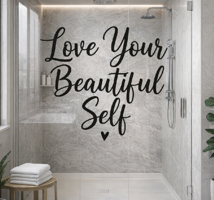 De Douchedeur sticker positieve zelfliefde typografie douchedeur sticker is niet alleen een decoratieve toevoeging, maar ook een bron van dagelijkse inspiratie. Het gebruik van deze sticker in uw badkamer zal een positieve sfeer creëren, waardoor uw dag beter begint. Deze sticker herinnert u eraan om van uzelf te houden en uw zelfvertrouwen te versterken. Het is een eenvoudige manier om uw ruimte op te fleuren en tegelijkertijd een krachtige boodschap uit te dragen. Laat uw badkamer stralen met deze unieke toevoeging!