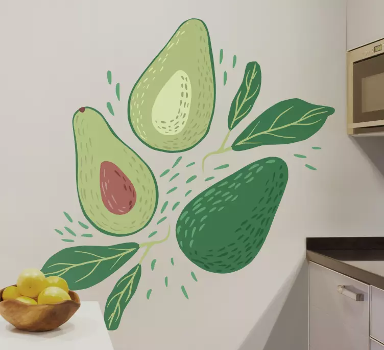 Laat je creativiteit de vrije loop met onze Fruit sticker avocado cluster! Deze prachtige sticker, versierd met levendige avocado's, bladeren en andere natuurlijke elementen, brengt een frisse en gezonde uitstraling in elke ruimte. Het ontwerp ademt de natuur en is perfect voor liefhebbers van gezond voedsel en de vegetale levensstijl. Met zijn satijnen afwerking zorgt deze sticker ervoor dat je interieur straalt zonder reflecties, terwijl de uitstekende kleurintensiteit een ware blikvanger is!