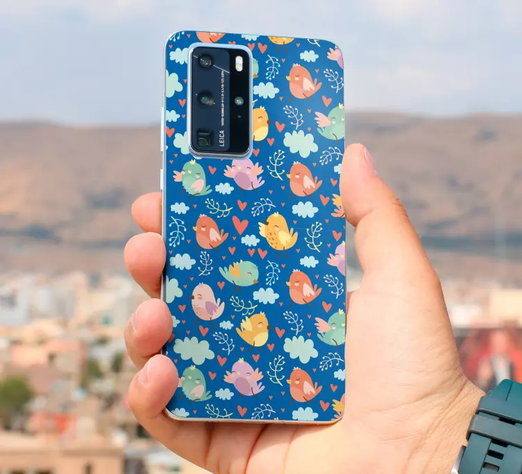 Geef uw Huawei een speelse uitstraling met onze Huawei sticker levendige vogel concept. Dit ontwerp is een kleurrijke en levendige illustratie van cartoonachtige vogels, harten en wolken, die samen een vrolijke en uitnodigende sfeer creëren. Deze sticker is perfect voor iedereen die zijn telefoon wil personaliseren met een unieke touch die opvalt! De combinatie van kleurrijk en speels maakt deze sticker een perfecte keuze voor zowel jong als oud.