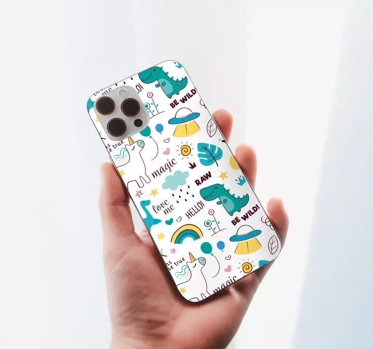Breng een sprankje magie en fantasie naar je telefoon met onze iPhone sticker speelse wezens patronen. Dit kleurrijke ontwerp, vol met schattige dinosaurussen en eenhoorns, zorgt ervoor dat je iPhone niet alleen een telefoon is, maar een kunstwerkje vol leven. Perfect voor iedereen die houdt van vrolijke en speelse patronen!