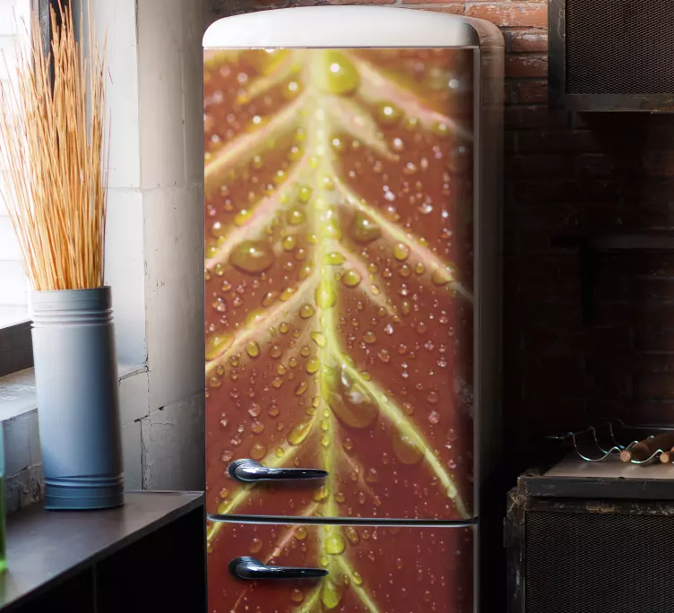 Koelkast sticker bladeren met waterdruppels