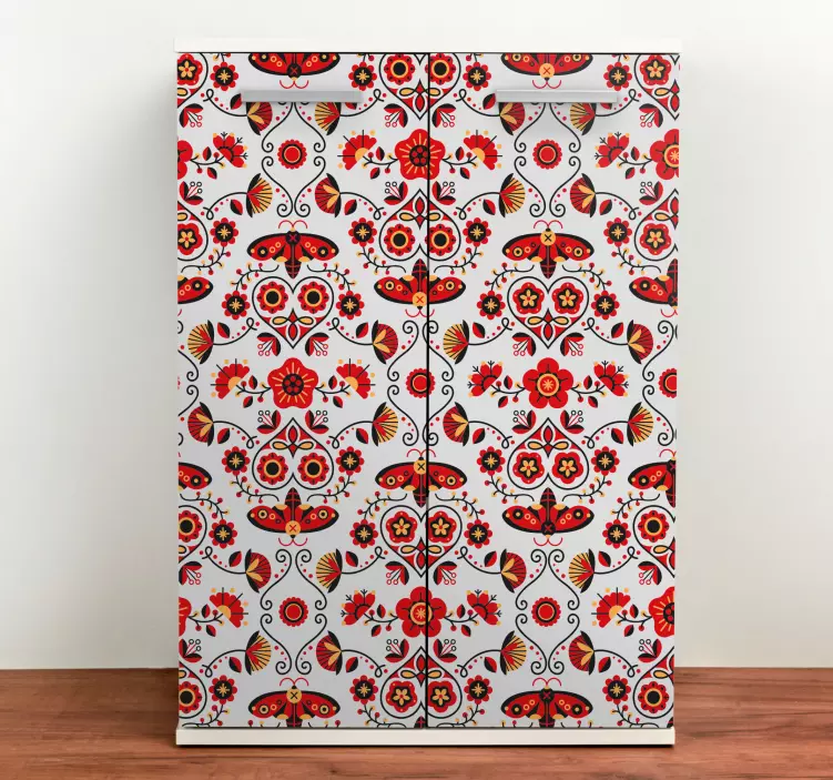Breng een vleugje natuur in uw keuken met onze Koelkast sticker botanisch motief kunstwerk. Dit prachtige ontwerp is een explosie van kleur en leven, met delicate bloemen en vrolijke vlinders die samen een levendig patroon vormen. Het kunstwerk geeft een frisse uitstraling aan uw interieur, waardoor uw koelkast verandert in een echte blikvanger. Met zijn warme, natuurlijke elementen en het gevoel van een bloeiende tuin, is deze sticker perfect voor elke liefhebber van de natuur!