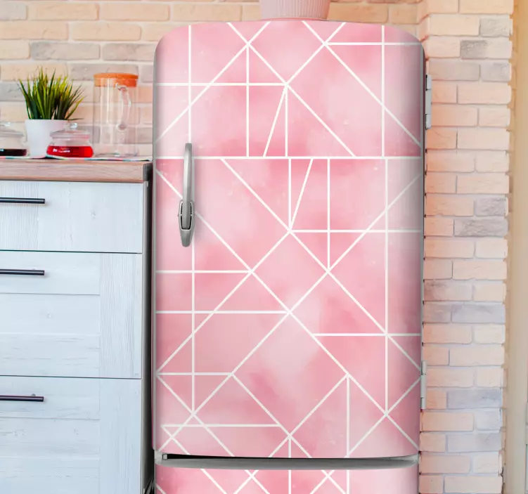 De Koelkast sticker geometrisch roze concept koelkast sticker is perfect voor iedereen die zijn keuken een unieke uitstraling wil geven. Met zijn moderne en gedurfde ontwerp transformeert deze sticker uw koelkast in een kunstwerk. Of u nu een minimalistische of een gedurfde stijl verkiest, deze sticker past perfect en laat uw persoonlijkheid spreken. Maak van uw keuken een plek waar stijl en functionaliteit samenkomen en laat deze sticker de aandacht trekken!