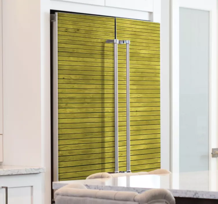 Breng de sfeer van de natuur in uw keuken met onze koelkast sticker houtplank effect. Deze prachtige sticker heeft een realistische houten textuur die de uitstraling van echte planken nabootst. De warme gele tinten creëren een uitnodigende ambiance, perfect voor het decoreren van uw koelkast. Met deze sticker tovert u uw keuken om tot een gezellige plek waar verse groente en andere lekkernijen prachtig tot hun recht komen!