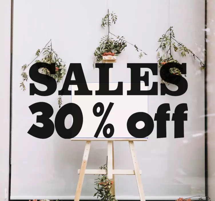 Koop de korting sticker 30% korting op verkoop korting sticker in onze online winkel en profiteer van de hoogwaardige materialen en de lange levensduur van het product. Geschikt voor elk vlak oppervlak, deze sticker is een slimme investering voor uw verkoopstrategieën!
