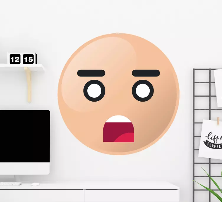 Ontdek onze Mens sticker verbaasde gezichtsuitdrukking, een opvallend ontwerp dat een geschokt gezicht met een verraste emoji weergeeft. Deze unieke gezichtsuitdrukking toont perfect de reactie van verbazing en voegt karakter toe aan elke ruimte. Met zijn levendige kleuren en expressieve gezichten is deze sticker een echte aanvulling voor je decoratie!