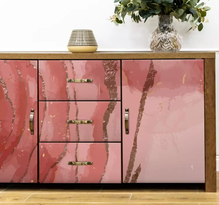 Transformeer uw interieur met onze Meubel sticker abstracte roze motieven, een kunstzinnig ontwerp dat marmertexturen en delicate roze waterverf lijnen combineert. Deze moderne en elegante sticker brengt een abstracte flair in elke ruimte, waardoor uw meubilair een artistieke uitstraling krijgt. Het biedt een unieke manier om uw stijl uit te drukken en geeft een frisse look aan uw omgeving!