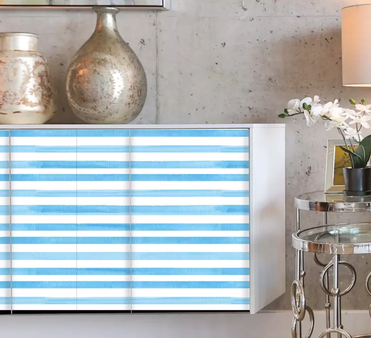 Meubel sticker blauwe gestreepte motief