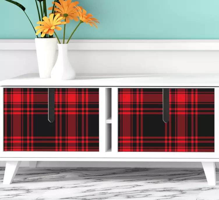 Transformeer uw interieur met de Meubel sticker gecontroleerde textuur oppervlak, die een prachtig tartanpatroon in rood en zwart toont, perfect voor elk huis. Dit unieke ontwerp, dat een plaid uitstraling heeft, brengt een gevoel van warmte en stijl in uw meubilair, waardoor het een echte blikvanger wordt!
