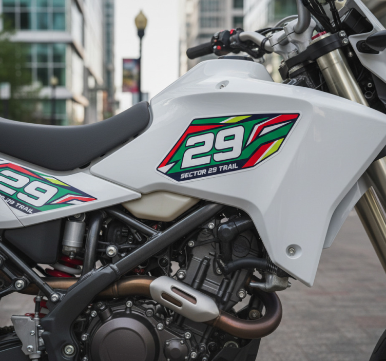 De Motor sticker sector 29 trail is een prachtig ontworpen sticker die je motorbike direct laat opvallen! Met een satijnen afwerking biedt deze sticker een uitstekende kleurintensiteit zonder reflecties te creëren. Dit maakt het mogelijk om de schoonheid van het ontwerp optimaal te waarderen, zowel in natuurlijk als kunstmatig licht. Het gebruik van topkwaliteit vinyl zorgt ervoor dat deze sticker bestand is tegen verschillende weersomstandigheden en jarenlang mee kan gaan. Dit product is niet alleen praktisch maar ook een echte eyecatcher!