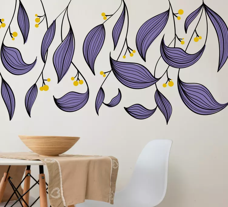 Muursticker bloemen en planten paarse bladeren patroon