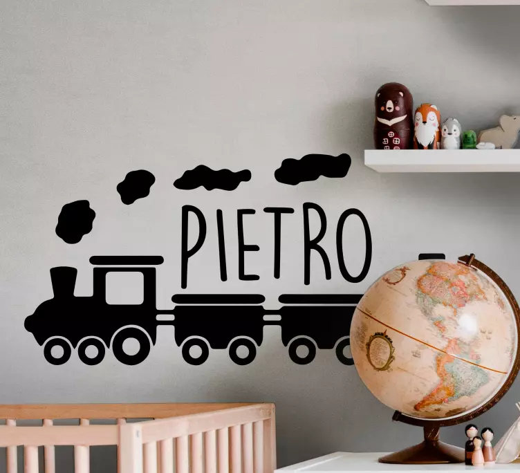 Maak de kinderkamer extra speciaal met onze Muursticker kinderkamer train gepersonaliseerde naam. Dit speelse ontwerp met een trein die de naam van uw kind toont, creëert een vrolijke sfeer en stimuleert de verbeelding. Kinderen zullen dol zijn op deze kleurrijke illustratie die perfect past in hun wereld van avontuur en vervoer. Het is een unieke manier om een persoonlijke touch toe te voegen aan hun ruimte en hen te inspireren om te dromen en te spelen!