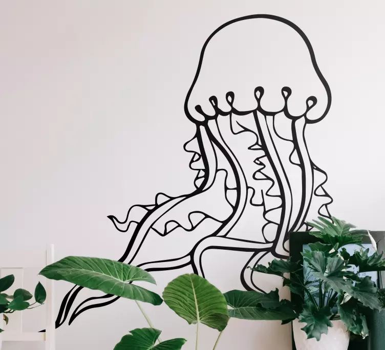 Breng de schoonheid van de oceaan in uw huis met onze Muursticker wilde dieren elegante medusa omlijning. Dit prachtige ontwerp toont een verfijnde tekening van kwallen, waarbij de delicate schetsen het leven in zee vastleggen. De minimalistische kunst in zwart en wit zorgt voor een aquatisch gevoel dat elke ruimte tot leven brengt.