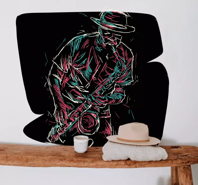 De Muziek muursticker saxofonist aan het spelen muziek muursticker is de ideale oplossing om elke ruimte te transformeren. Het voegt niet alleen karakter toe aan uw interieur, maar creëert ook een muzikale sfeer die uitnodigt tot creativiteit en ontspanning. Laat uw muren spreken en inspireer uw gasten met deze unieke muursticker die de liefde voor muziek viert!
