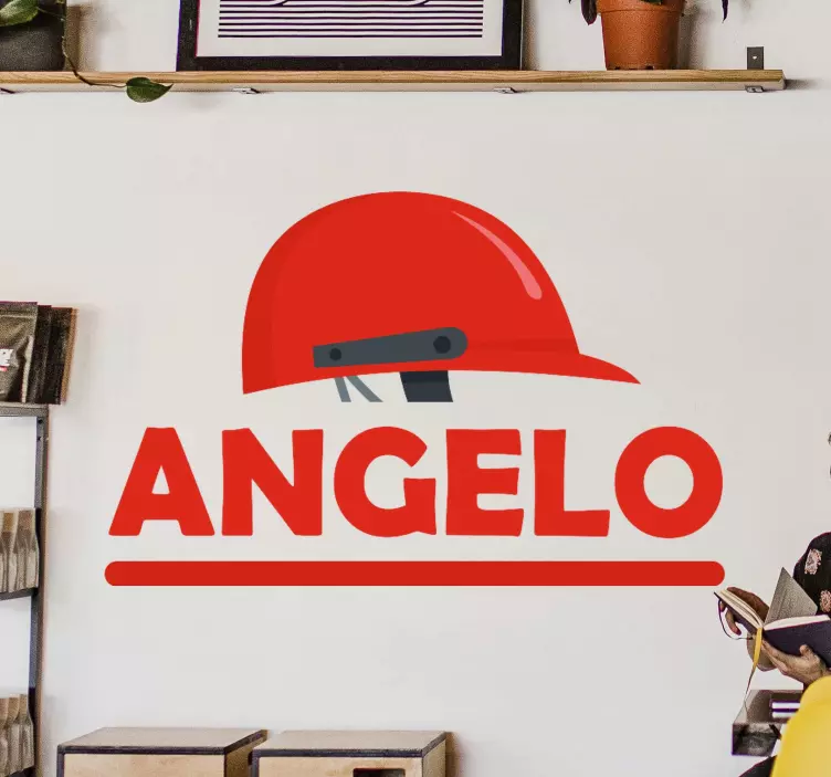 Referentienummer: A50553Dit ontwerp bevat een veiligheidshelm naast een duidelijk weergegeven naam. Het dient als een unieke identificatie, perfect voor het personaliseren van een werkruimte of creatieve ruimte, en belichaamt een professioneel bouwthema.