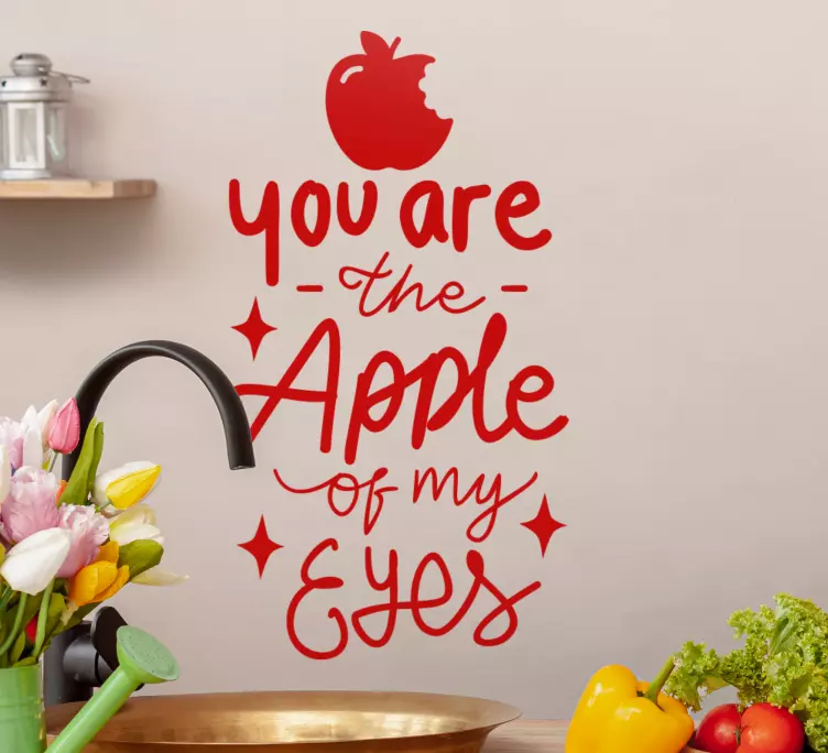 Referentienummer: A49160Een speelse quote die genegenheid benadrukt, met een levendige appelillustratie. De tekst drukt op creatieve wijze tederheid uit, waardoor het een heerlijke aanvulling is voor keukendecoratie. Dit ontwerp is geschikt voor diverse aanpasbare behoeften en voegt een persoonlijk tintje toe aan je ruimte.