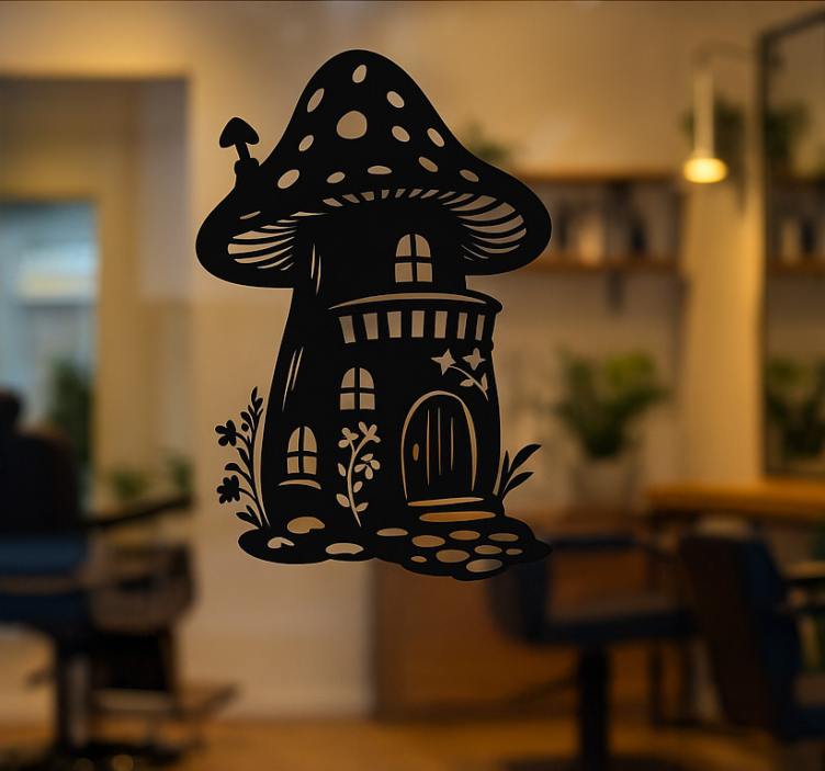Raamsticker sprookjesachtig paddenstoelenhuis