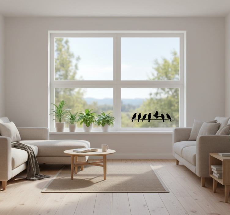 Raamsticker vogels op een lijnrek
