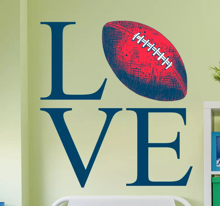 Geef je liefde voor de sport een visuele uiting met onze unieke Sticker amerikaans voetbal liefde voor voetbal kunst. Dit prachtige ontwerp vangt de essentie van rugby en voetbal, met een bal die vol passie en energie is. De sticker is een echt hoogtepunt voor elke sportliefhebber en voegt een speelse touch toe aan je decor, perfect voor een woonkamer, kantoor of sportruimte!