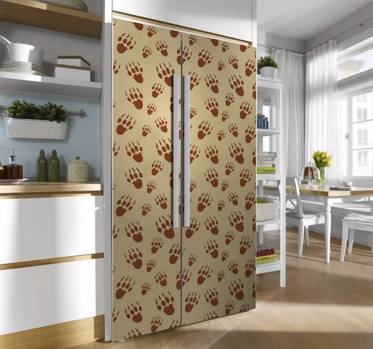 Geef uw keuken een unieke uitstraling met onze Sticker huishoudelijke apparaten berenpootafdrukken. Dit prachtige ontwerp bevat een speelse combinatie van stekelvarken en beer sporen, waardoor het een perfect decoratief element is voor uw koelkast. Met dierenprints en een natuurthema brengt deze sticker een vleugje avontuur in uw keuken ontwerp.