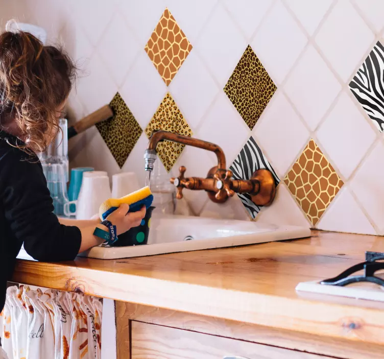 Referentienummer: A13462Deze set tegelstickers met dierenprint bestaat uit verschillende stickerontwerpen. Als u specifieke ontwerpen wilt, geef dan bij de kassa ( Bestelnota's ) aan welke ontwerpen u wilt. Anders gaan we over tot het maken van duplicaten van de ontwerpen vanaf de bovenkant van de tweede afbeelding.