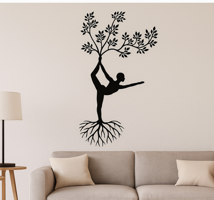 Referentienummer: A54036Breng rust en harmonie in uw woonkamer met de prachtige woonkamer muursticker yoga boom. Dit unieke ontwerp toont een elegante, gestileerde boom die symbool staat voor balans en zen. Met zijn satijnen afwerking zorgt deze sticker voor een rijke kleurintensiteit zonder reflecties, waardoor het perfect past in elke ruimte.