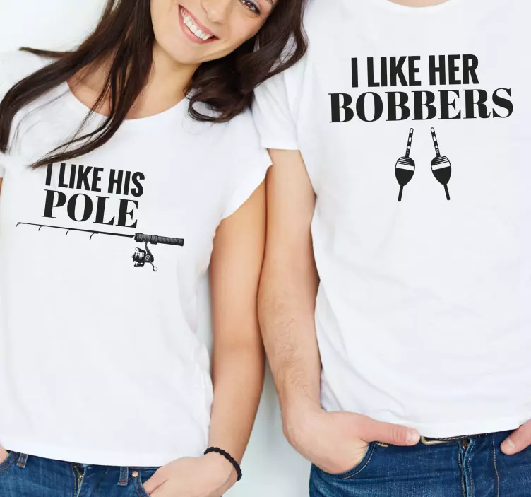 Referentienummer: T5280Dit beeld toont een stel dat speelse shirts draagt met humoristische citaten over vissen. Elk shirt benadrukt geestige zinnen, die plezier en charme combineren, perfect voor koppels die samen van vissen houden. Het ontwerp omarmt een luchtig thema dat zowel de dragers als de toeschouwers zeker zal vermaken.