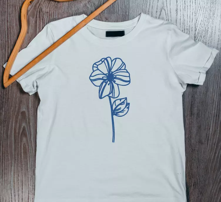 Referentienummer: T4406Dit stijlvolle kledingstuk heeft een minimalistisch bloemenontwerp, met een delicate bloei die een gracieuze stam en blad toont. De elegante blauwe omtrek voegt een vleugje verfijning toe, waardoor het perfect is voor casual wear.