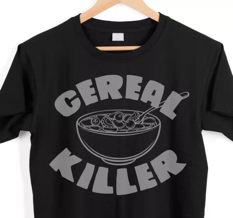 Ontdek ons T-shirt cereal liefhebber thema dat perfect is voor de echte graanliefhebber! Dit unieke ontwerp combineert een speelse grafische stijl met humor en een grappige woordspeling. Met elementen van moordenaars en voedsel brengt dit T-shirt een glimlach op je gezicht. Het zwarte ontwerp straalt eenvoud uit, terwijl het leuke tekst en afbeeldingen een echte blikvanger zijn. Dit T-shirt is niet alleen een fashion statement, maar ook een geweldig gespreksonderwerp!