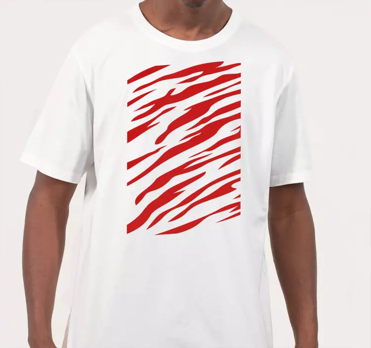 Dit t-shirt met gedurfde rode strepen is een echte blikvanger! Het grafische ontwerp met een dynamisch tijgerpatroon en contrasterende rode strepen zorgt voor een moderne uitstraling die perfect is voor modebewuste mensen. De combinatie van strepen en prints geeft een speelse twist aan je outfit, waardoor je altijd stijlvol voor de dag komt!